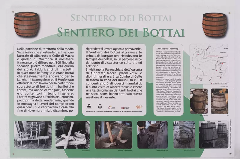 L’istòric palais comunal d’l’Albarèt, un bòt centre d’l’activitat politica e sociala del pòst, conta e garda l’istòria d’un antic mestier encuei despareissut. L’espaci expositiu documenta lo trabalh itinerant di cibriers, que l’Albarèt eron nombrós, e partion coma ambulants l’automn, quora se polia pas far la campanha, vers las caissinas des Langas, del Montferrat e del Montregalés, per realizar o arranjar botals d’bòsc ente fementavon de vins famós coma Barbera, Barbaresc, Docèt.